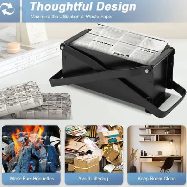 Kompakt pappersbrikettpress i svart Förvandla gamla tidningar och magasin till användbara bränslebriketter. Denna manuella brikettpress i svart minskar pappersavfall, sänker uppvärmningskostnader och gör eldning mer miljövänlig.