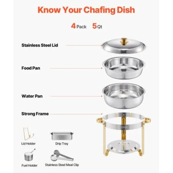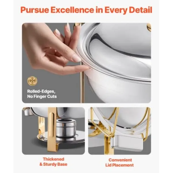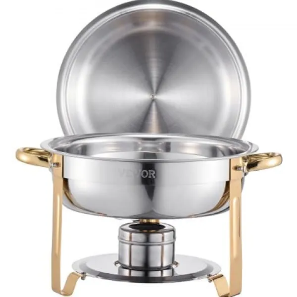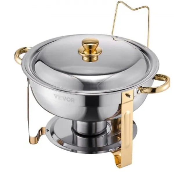 Detta eleganta chafing dish-bufféset är perfekt för bröllop, fester och banketter och erbjuder ett stilfullt sätt att hålla dina rätter vid idealisk temperatur under hela evenemanget. Tillverkat av högkvalitativt rostfritt stål med en sofistikerad guldfinish, har det en platsbesparande hopfällbar design och inkluderar allt du behöver för smidig servering. Setet är hållbart, lätt att rengöra och utformat för både funktionalitet och visuell attraktionskraft.