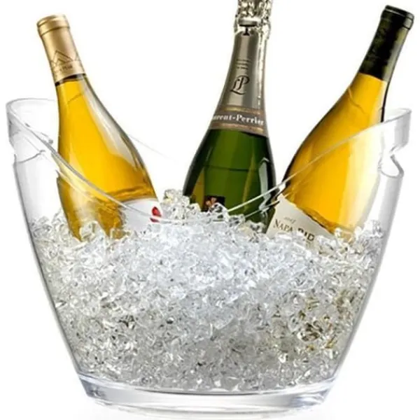 Elegant och praktisk champagnehink som rymmer 3 flaskor med is. Mått: 34x26x24 cm. Tillverkad av robust plast, den är idealisk för dina mottagningar.