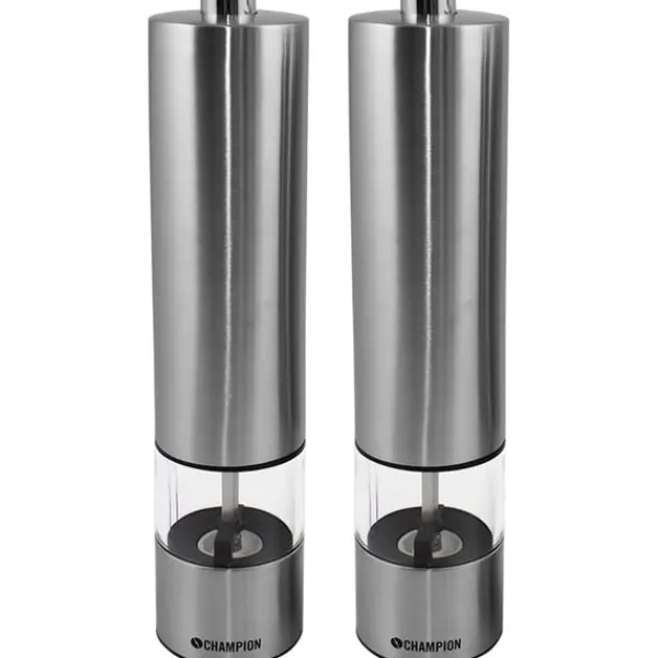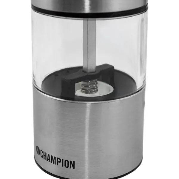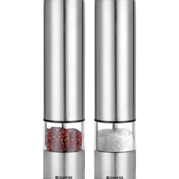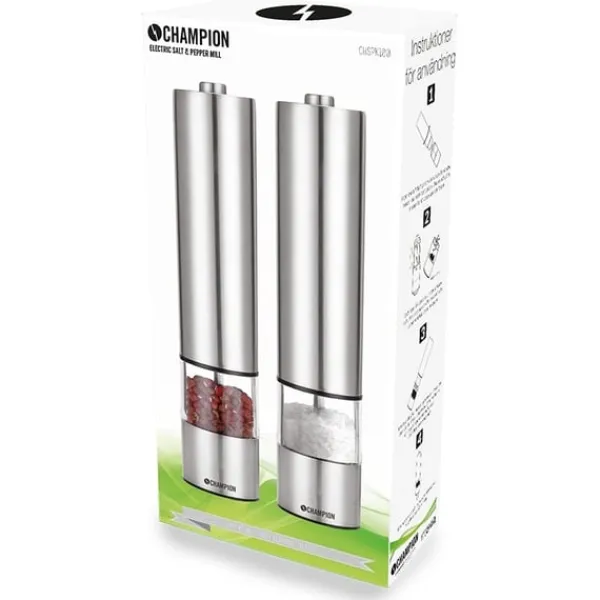 Med Champion elektriska salt & pepparkvarn är nymalda kryddor bara ett handtryck borta. Salt & pepparkvarnen är enkla att fylla på och är utrustade med en praktisk belysning i botten som startar automatiskt vid malning. Den stilrena designen passar både för köksbänken och direkt på bordet. Drivs med 4 AA-batterier.
