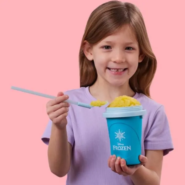 Gör härligt svalkande Slushies med Chillfactor Slushy Maker. Motiv från Disney Frost. Lägg muggen i frysen och vänta till kylelementet är helt fryst (5-6 timmar). Fyll den med kall dricka, vänta en liten stund och kläm på muggen. Snart är din slush färdig och redo att avnjutas med den medföljande skeden/sugröret. Enkelt och gott, perfekt för varma sommardagar.