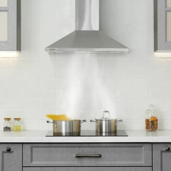 Denna väggmonterade köksfläkt från CIARRA på 60 cm är perfekt för ett modernt och funktionellt kök. Med dubbla driftslägen kan den användas antingen för utblås eller återcirkulation, tack vare medföljande kolfilter. Den har energiklass A++ vilket säkerställer låg strömförbrukning. Tre fläkthastigheter anpassar sig efter dina matlagningsbehov med effektiv och tyst drift.