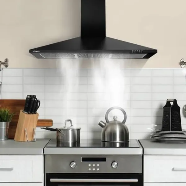 CIARRA CBCB9201 köksfläkt erbjuder ett brett extraktionsområde på 90 cm – perfekt för medelstora till stora kök. Med energiklass A++ och möjlighet till återcirkulation eller utsugning, levereras den med aktiva kolfilter. Motorn på 40 W ger upp till 370 m³/h luftflöde med låg ljudnivå.