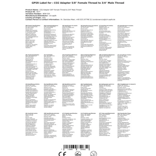 CO2-adapter 5/8 invändig gänga till 3/4 utvändig gänga Förbättra prestandan i ditt CO2-system med denna högkvalitativa CO2-adapter. Med en invändig gänga på 5/8 och en utvändig gänga på 3/4 så är denna adapter det perfekta verktyget för att utöka ditt val av CO2-tryckkärl, vilket säkerställer längre drifttid och ökad effektivitet. Fördelar med CO2-adaptern i korthet: •Låter dig använda större CO2-tryckkärl för en längre livslängd och högsta effektivitet (upp till 170 tecken) •Enkel installation och användning utan behov av extra verktyg eller kunskaper (upp till 170 tecken) •Tillverkad av högkvalitativ metall för maximal hållbarhet och livslängd (upp till 170 tecken) •Användbar i en mängd olika catering- och barinställningar för bästa anpassning (upp till 170 tecken) Denna CO2-adapter är speciellt utformad för att förbättra funktionaliteten och estetiken i ditt CO2-system. Med enkel installation och användning behöver du ingen specialkunskap för att utöka prestandan hos ditt CO2-system. Den högkvalitativa metallkonstruktionen garanterar maximal hållbarhet och livslängd och produkten är användbar i olika catering- och barinställningar. Förutom att förbättra funktionaliteten ger denna adapter även en estetisk uppgradering till ditt CO2-system med sin eleganta och snygga design. Skaffa CO2-adaptern 5/8 invändig gänga till 3/4 utvändig gänga idag och optimera prestandan och effektiviteten i ditt CO2-system. Detta tillbehör är en investering som kommer löna sig i framtiden för din restaurang eller bar.