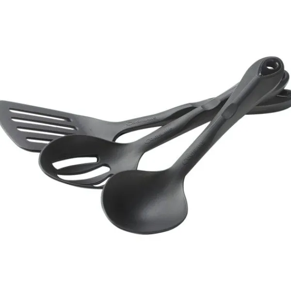 Laga och servera mat med rejäla och tåliga verktyg från Coghlans. Detta verktygssset väger exakt 100 gram och är tillverkat i flexigt och värmetåligt nylon, garanterat att klara 210 grader celsius. Verktygen är lätta att rengöra och kan fästas ihop eller hängas upp i karbin skaftets hål (karbin medföljer ej).