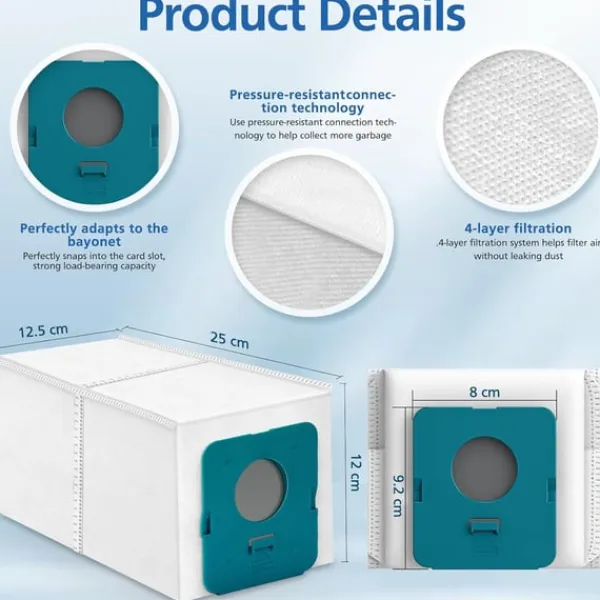Stor kapacitet: Varje dammpåse har en generös kapacitet på 2,7 liter, vilket möjliggör längre rengöringssessioner utan frekventa byten.