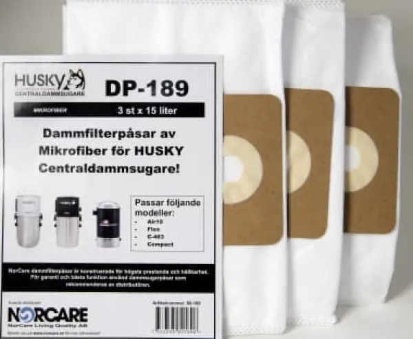Originalpåsar för centraldammsugare från Husky. Dammsugarpåsarna i mikrofiber passar följande modeller av centraldammsugare: