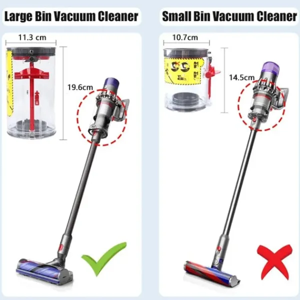 Optimera dammsugarens prestanda med en större, förbättrad dammbehållare anpassad för Dyson. Den rymliga konstruktionen minskar tömningsfrekvensen och förenklar rengöringen tack vare ett mer ergonomiskt utformat upplåsningshandtag. En förstärkt tätningsring förhindrar läckage och ger ett mer effektivt luftflöde.