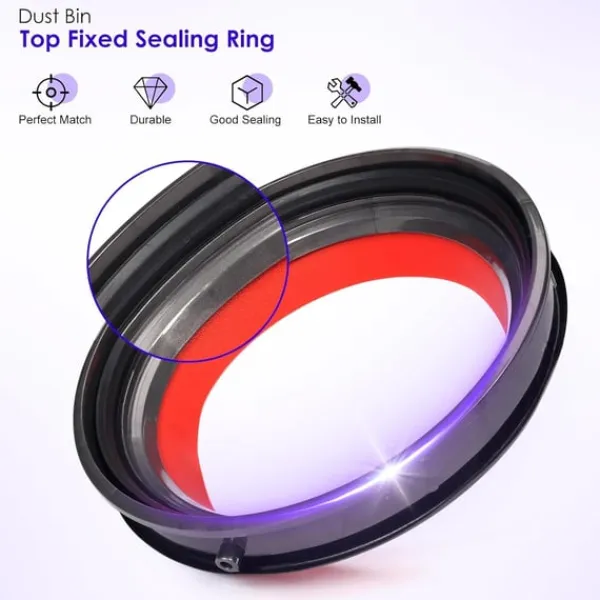 Förbättrad tätning: Den uppgraderade tätningsringen säkerställer en tätare passform för din Dyson dammbehållare, vilket minskar risken för läckage och förbättrar sugkraften. Denna förbättrade tätning bidrar till en mer effektiv rengöring och ett renare hem. Den är kompatibel med Dyson V11, V15, Gen5 och SV-serien, vilket gör den till en mångsidig uppgradering för din dammsugare. Denna ring är tillverkad av högkvalitativa material och är utformad för att tåla regelbunden användning och ge långvarig prestanda.