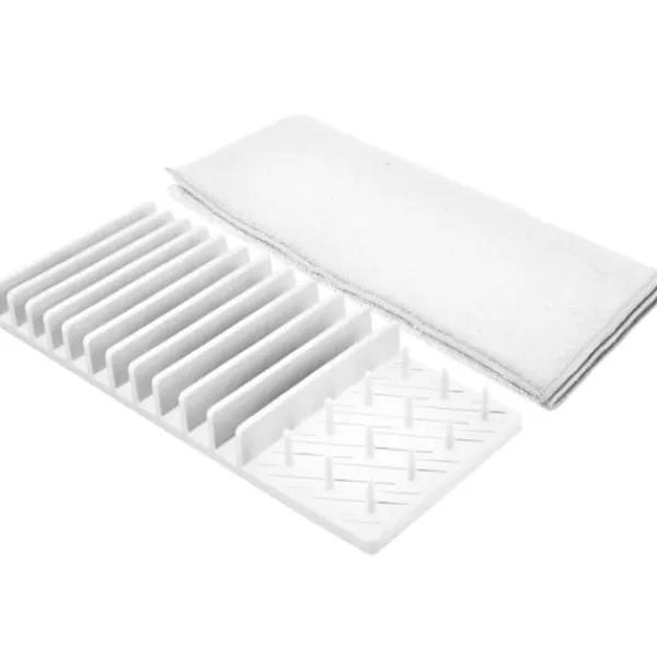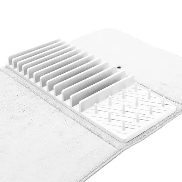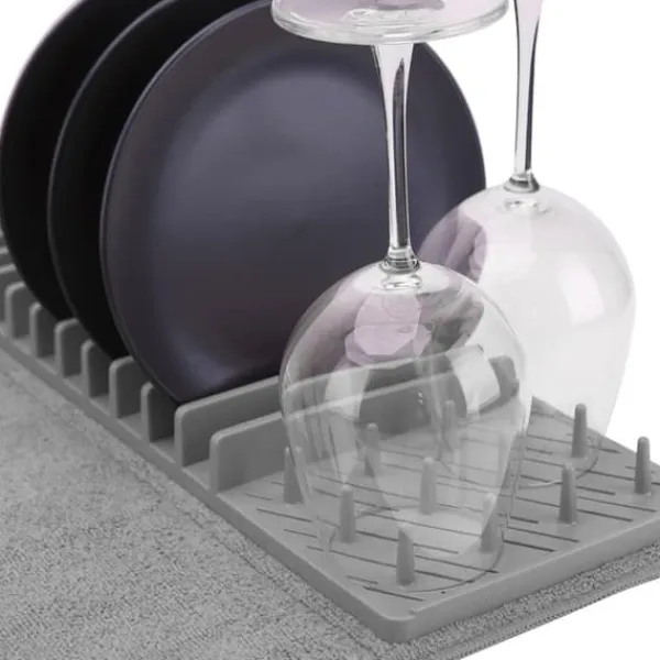 Få saker är lika härliga som städade kök. Föreställ dig ordnade köksbänkar, en tom diskho och diskbänkar fria från disk. En orealistisk dröm. Eller? Varför inte maximera utrymmet med ett minimalistiskt diskställ? Detta diskställ har plats för att torka dina tallrikar och glas, och kommer med ett underlägg som absorberar vattnet som rinner av. När disken har torkat kan du enkelt plocka undan och förvara stället i kökslådan, så att diskbänken håller sig tom.