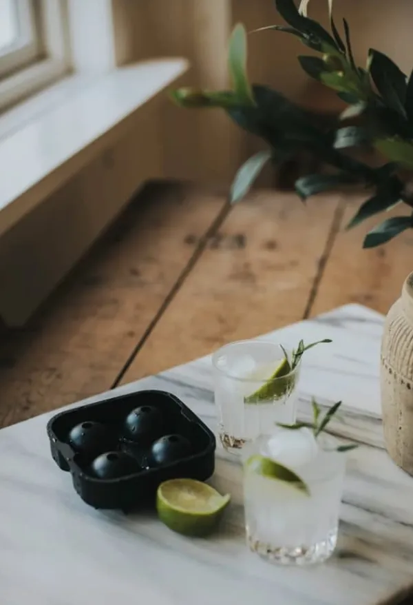 Silikonform för att göra runda stora iskuber som blir Ø4,5 cm i storlek, liten tratt följer med för påfyllning.