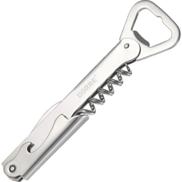 En tidlös och praktisk öppnare i rostfritt stål som kombinerar korkskruv, kapsylöppnare och folieskärare i ett verktyg. Ett slitstarkt och mångsidigt redskap som passar lika bra hemma som på picknicken eller festen – perfekt för alla vin- och ölälskare som uppskattar funktion och kvalitet.