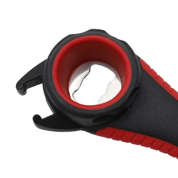Mångsidig funktionalitet: Denna multifunktionsöppnare kombinerar fem viktiga funktioner: flasköppnare, burköppnare, läsköppnare, räkor, och burköppnare, som tillgodoser alla dina behov i köket och utomhus.