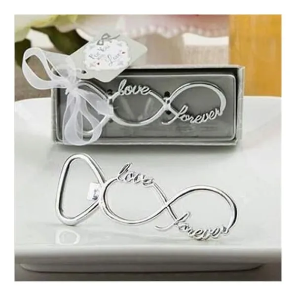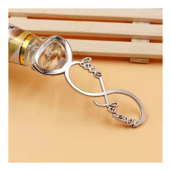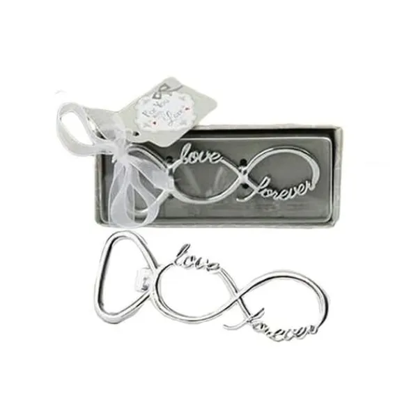 Denna Love forever flasköppnare är en romantisk accessoar. Den visar oändlighetstecknet. Den ligger i en vacker presentförpackning. Den har en etikett på vilken frasen står skrivet >.* Mått: 10 x 4 cm * Material: rostfritt stål * Färg: silver * Presentförpackning Funktioner: flasköppnare Innehåll: 1 romantisk flasköppnare