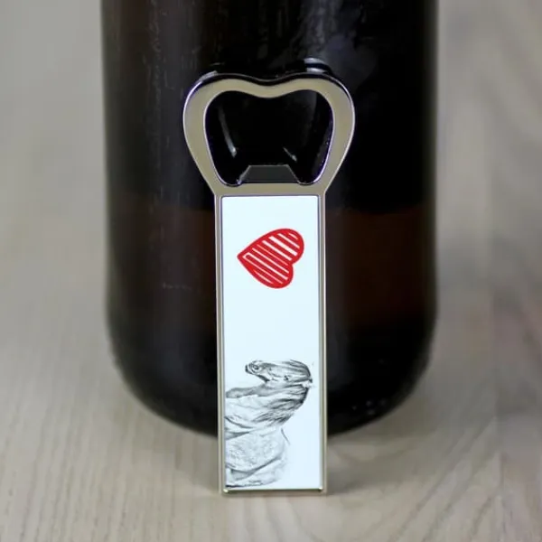 En dag som kräver en skål kommer denna öppnare att göra firandet ännu trevligare för alla djurälskare. Den klassiska flasköppnaren är dekorerad med unik grafik med bilden av en hund, katt eller häst. Produkten har två magneter på baksidan, tack vare vilka du kan fästa prylen i kylskåpet och alltid ha den till hands. Du kan göra det ännu mer charmigt genom att skicka oss ett foto på ditt husdjur! Vi kommer att trycka dem i originalfärgerna eller konvertera dem till ”pennskiss”-versionen som är synlig i detta erbjudande – beslutet är ditt.
