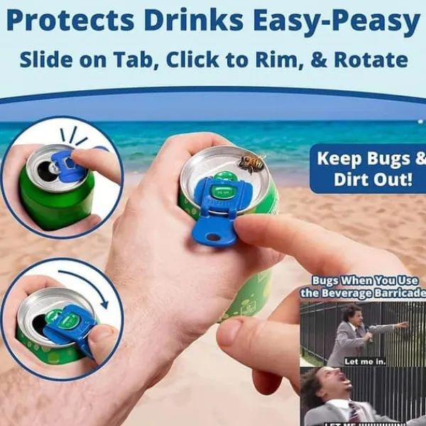 Fungerar som lock efter öppning för att skydda drycken mot damm, insekter och spill, idealiskt för picknick, grillfester och strandutflykter.