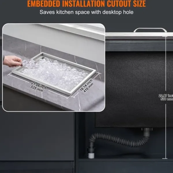 Inbyggd installation: Islagret kan installeras i dryckesbutiker, hotell eller barer. Det är också lämpligt för köksbänkar både inomhus och utomhus. Inbyggnaden sparar plats.