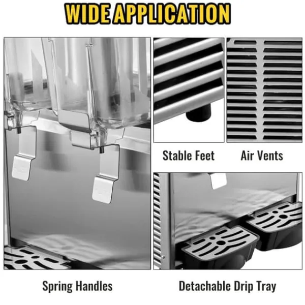 BRED ANVÄNDNING – Denna kommersiella, multifunktionella juice-dispenser är perfekt för framstående cateringföretag, såsom restaurangkedjor, livsmedelsbutiker, hotell, gym osv., för att rymma olika drycker som sojamjölk, milkshake, juice, cocktails, yoghurt, kaffe osv.