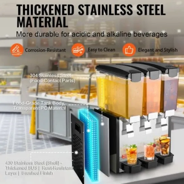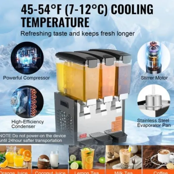 Denna kommersiella dryckesdispenser är perfekt för servering av olika kalla drycker i miljöer med hög trafik såsom restauranger, barer och fester. Den användarvänliga designen, det effektiva kylsystemet och de hållbara livsmedelsklassade materialen säkerställer pålitlig prestanda och enkel underhåll. Den stora kapaciteten och de smidiga dispenseringsfunktionerna gör den idealisk för hektiska miljöer.