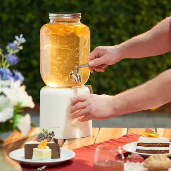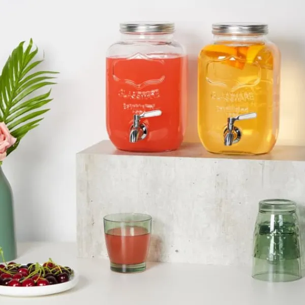 Detta set med två glasdryckesbehållare är perfekt för att servera olika drycker på trädgårdsfester, födelsedagar eller sammankomster hemma. Med en elegant vintagedesign och praktiska kranar för enkel upphällning håller dessa behållare dryckerna skyddade och lättillgängliga för dina gäster. Locken hjälper till att förhindra att insekter och smuts förorenar dina förfriskningar.