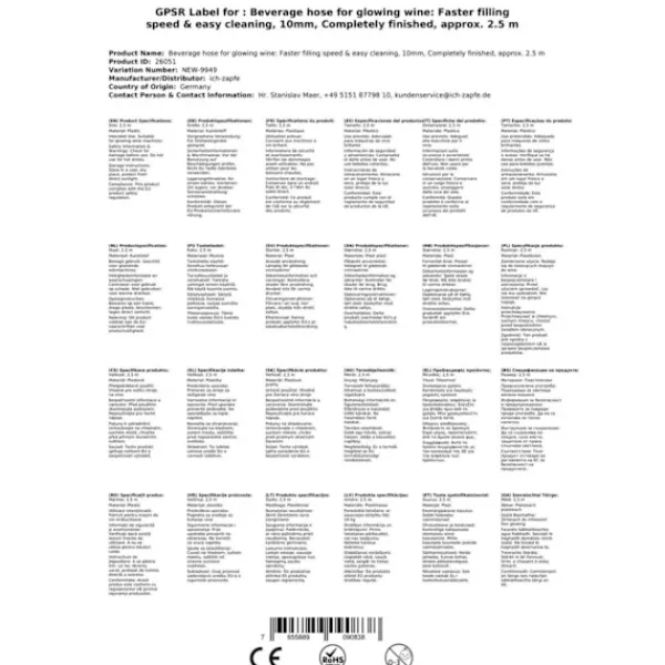 Drycker slang – 10 mm innerdiameter – av högkvalitativt, tunga SK – linjer – med en böjd pip klämma och tätning – 10 mm diameter – längd: 1,50 m