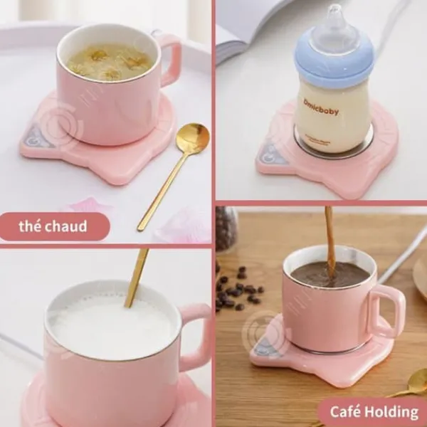 1. Set: Denna uppvärmda glasunderlägg kommer med en miljövänlig keramisk mugg med emaljbeläggning. Keramiken är tunn och slät, och insidan av koppen är också slät.