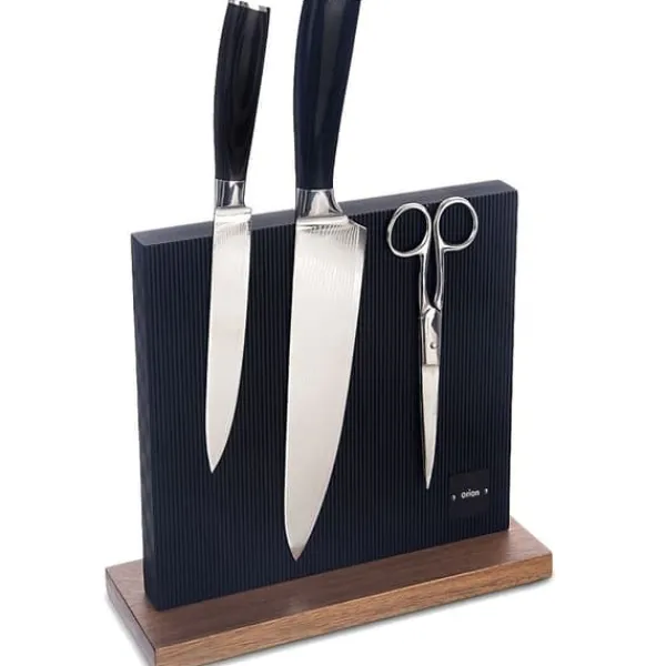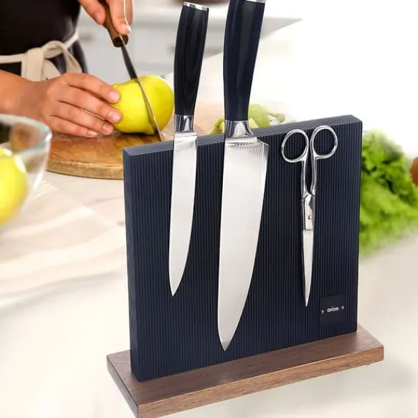 Dubbelsidigt, magnetiskt knivställ. Extremt attraktivt, det kommer att dekorera alla kök samtidigt som det möjliggör korrekt förvaring av knivar och kökstillbehör. Det har en modern design, så det passar både moderna och klassiska kök. Originalprodukt från det tjeckiska märket Orion. Tillverkad enligt europeiska standarder.