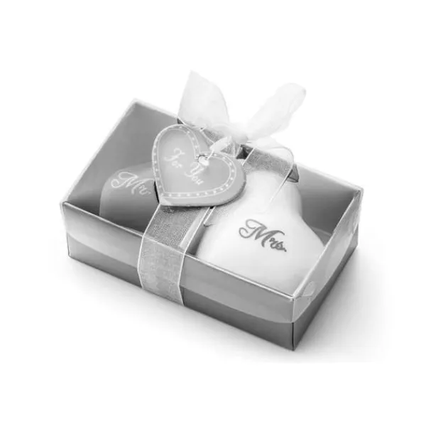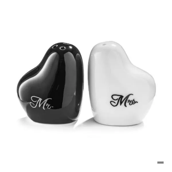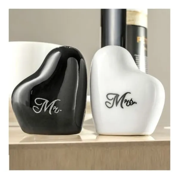 Ge en romantisk touch till ett bord för en middag enskilt med denna salt- och pepparkar i form av hjärtan. De representerar mannen och kvinnan med inskriptionerna Mr. och Mrs. En perfekt present för Alla hjärtans dag. * Material: keramik * Dimensioner: 5,6 x 4,5 x 3,5 cm Funktioner: salt- och pepparkar Innehåll: Salt- och pepparkar hjärtan Mr. och Mrs.