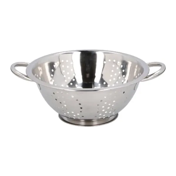 Detta durkslag i rostfritt stål är ett oumbärligt köksredskap som underlättar både matlagning och servering. Med sina praktiska handtag blir det enkelt att hälla av vatten från pasta, skölja grönsaker eller sila ingredienser. Den stabila konstruktionen i rostfritt stål gör durkslaget hållbart och motståndskraftigt mot vardagligt slitage, samtidigt som den blanka finishen ger en stilren känsla på köksbänken.