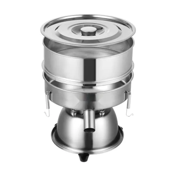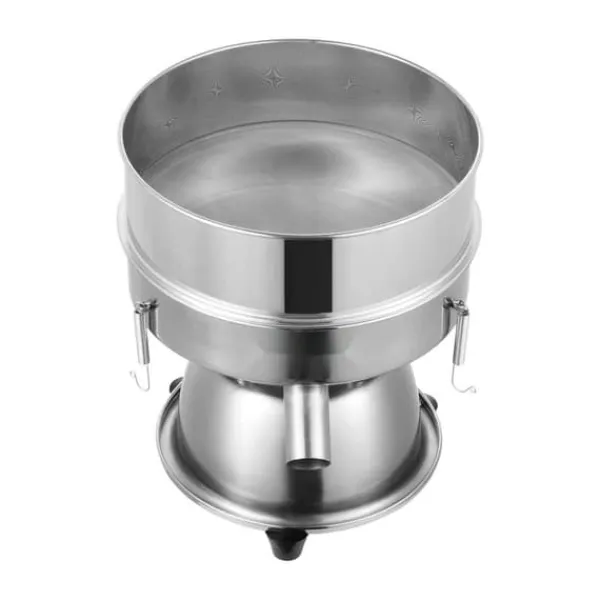Noggrant utvalt högkvalitativt rostfritt stål säkerställer hållbarhet, säkerhet och hygien, vilket gör det idealiskt för komplexa screeningförhållanden som involverar pulver och vätskor. Det runda utloppet i rostfritt stål ger jämn materialutsläpp utan igensättning och det är enkelt att koppla ihop olika slangar. Specialdesignade fjäderkrokar i rostfritt stål erbjuder utmärkt elasticitet och stark spänning, vilket effektivt förhindrar sållramen från att falla av eller orsaka onormalt ljud.