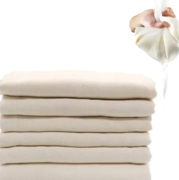 Vår ostduk av 100 % kvalitet 90 är tvättbar och återanvändbar, till skillnad från andra märken och alternativ av ostdukar, som bara kan användas en gång. Premium-ostduk filtrerar bort mer än andra ostdukar.