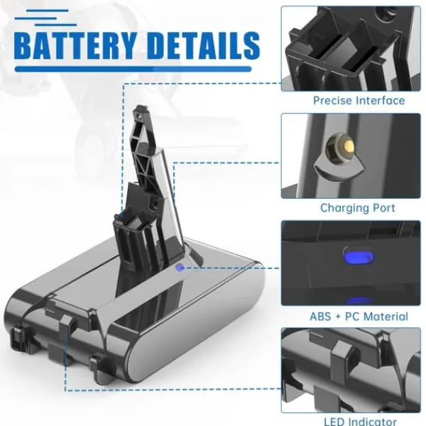 Dyson V7 ersättningsbatteri 21,6V 6000mAh – Ljusgrå