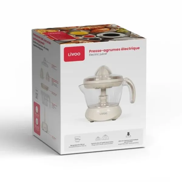 Erbjud dig färska juicer enkelt med juicepressen LIVOO DOD131C. Utrustad med en skål på 700 ml med handtag och hällpip startar den automatiskt med ett enkelt tryck. Dubbelriktad rotation för optimal avkastning, dammtäthet och synlig juznivå. Kompakt och praktisk för daglig användning.