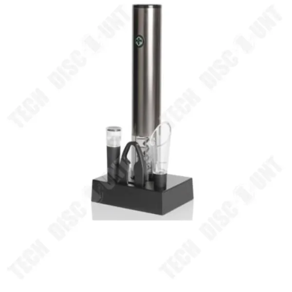 Upptäck TD® elektriska flasköppnaren i aluminium- och rostfritt stålkombination. Kompakt (24,2 cm) är den lätt att använda och snygg. Perfekt för att öppna dina vinflaskor utan ansträngning, den levereras med en laddningsbas. Vikt: 663G. Perfekt för vinälskare!