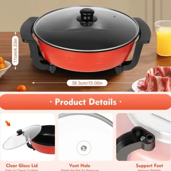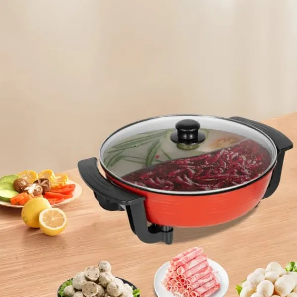 Mångsidig elektrisk hotpot för familj och vännerDenna elektriska hotpot kombinerar snabb, jämn uppvärmning med enkel hantering. Med integrerad grytdesign och högkvalitativ nonstick-beläggning fixar du stekning, kokning, långkok och hotpot – perfekt för middagar med 3–4 personer.
