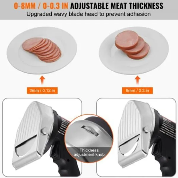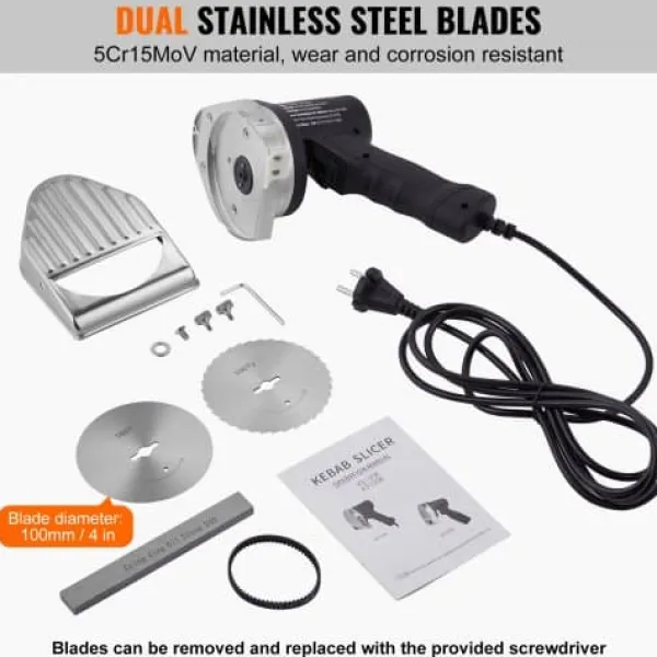 Denna elektriska shawarma-kniv är utformad för professionellt och kommersiellt bruk och gör det enkelt att skiva donerkebab, gyros och andra köttsorter effektivt. Med två utbytbara blad i rostfritt stål och ett justerbart tjockleksvred ger den precisa snitt och anpassar sig till olika texturer. Den lätta, ergonomiska designen och de löstagbara delarna säkerställer bekväm hantering och enkel rengöring.