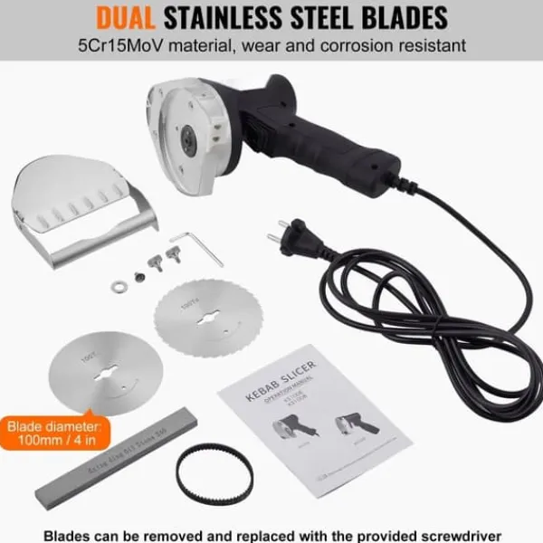 Snabb skärning: Denna professionella turkiska kebabskärare är utrustad med en 80-watts motor och vassa knivar, vilket gör att du snabbt kan skära köttet i skivor. Den ökar arbetsproduktiviteten avsevärt.