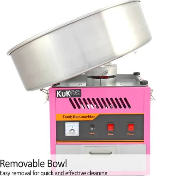 Sockervaddsmaskinen har en skål av rostfritt stål med en diameter på 50 cm – perfekt för den som vill starta ett eget företag, sälja på en festival eller marknad. Med maskinen tillkommer även 500 sockervaddspinnar så att det är lätt att komma igång. För att göra det lättare att ha tillgång till ingredienser och kontanter har maskinen även en utdragbar låda.