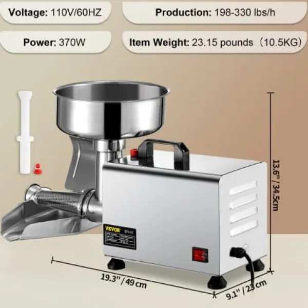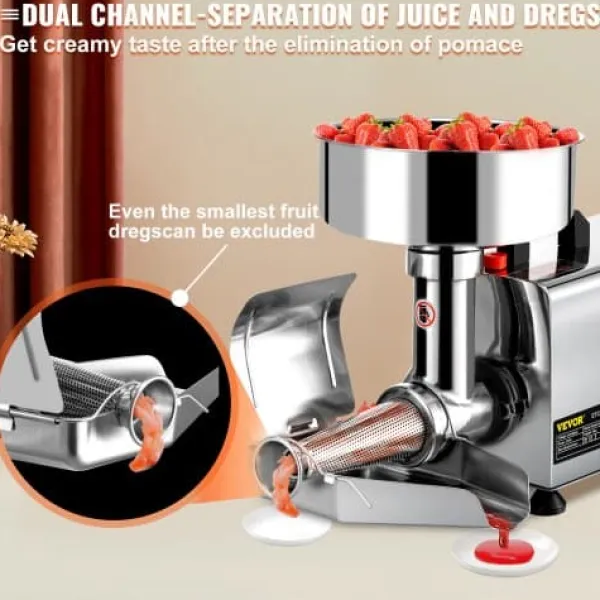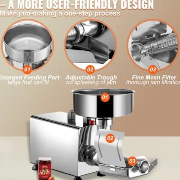 Denna elektriska tomatpress är utformad för effektiv och enkel tillredning av såser och sylt, med en kraftfull motor och dubbla kanaler för släta, raffinerade resultat. Den hållbara konstruktionen i rostfritt stål garanterar lång livslängd, medan enkel isärtagning gör rengöring och underhåll smidigt. Perfekt för hemmakockar, småföretag och professionella kök, förenklar den processen att göra tomatsås och fruktsylt.