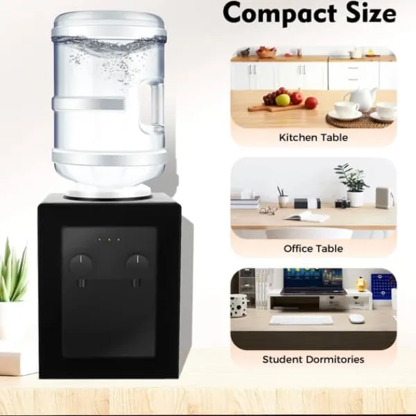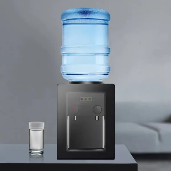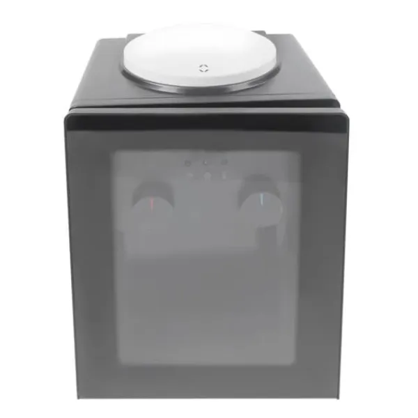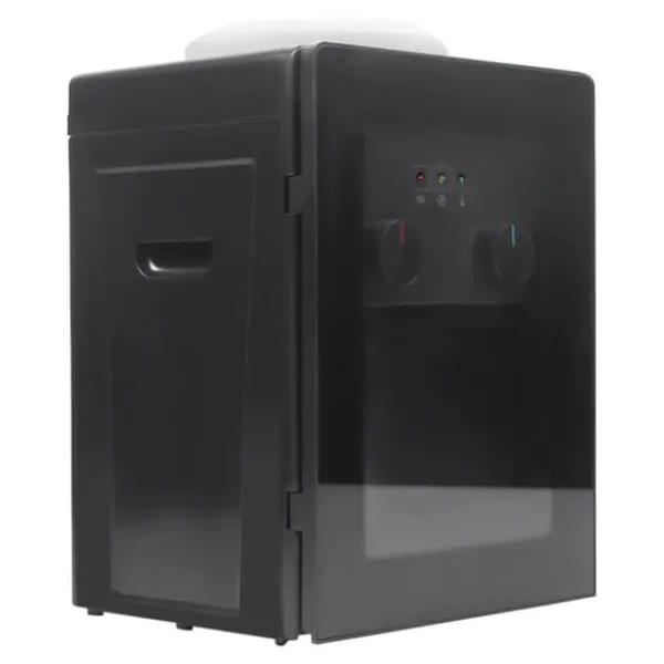 Elektrisk vattendispenser – Svart En kompakt och driftsäker dispenser för hem och kontor, perfekt för skrivbord, nattduksbord, soffbord och barer. Ger snabbt varmt eller svalt vatten när du behöver det – i stilren svart finish.