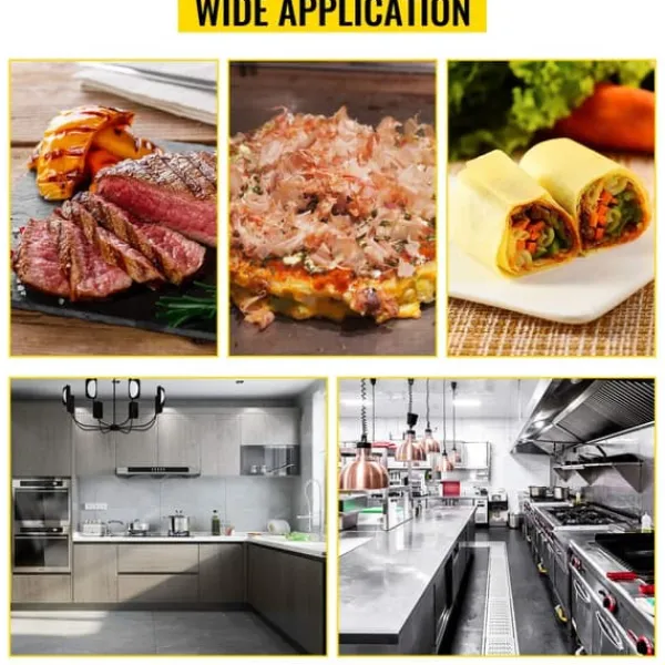 -Mångsidig stekpanna: Denna bänkgrill är perfekt för att laga grönsaker, kyckling, fisk, biff, grillad ost, pannkakor, äggröra och mer. Används ofta i snackbarer, kantiner, butikskedjor och andra kommersiella platser.