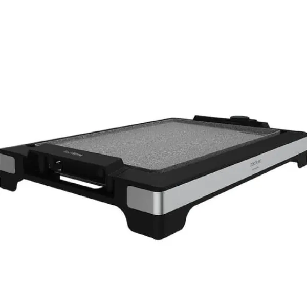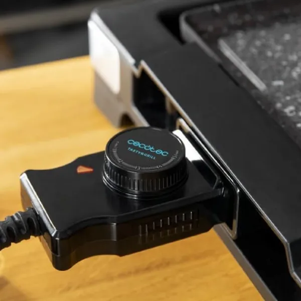 Electric griddle, 2000 W, with designer structure and stainless steel finish. Adjustable thermostat and non-stick plate with griddle surface, RockStone coating and dishwasher safe. Electric griddle, 2000 W, cooks all types of foods fast and precisely thanks to its built-in heating element, which guarantees an even heat distribution along the whole cooking surface. Designer griddle, thin and with stainless steel finish. Greater resistance and durability. Hard and resistant RockStone plate with non-stick coating. Fat and oil-free healthy cooking, and prevents food from sticking. Griddle surface to cook meat, vegetables, fried eggs, fish and shellfish or even crepes. Adjustable thermostat with 5 different power levels, for you to cook any recipe you wish to perfection. Large cooking surface, 37.5 x 24.5 cm, for cooking different food simultaneously. Easy cleaning thanks to its completely detachable and dishwasher-safe plate. It includes a fat-drip tray for a more comfortable and clean use. It is also dishwasher safe. Designed to be used directly on the table or as a tray in order to keep food warm for longer. Cool touch handles for a more comfortable use. Spatula included, perfect for turning, stirring and removing food. Non-slip feet. Grease-collection tray, PA spatula, stainless steel finish frame, RockStone griddle, temperature knob, instruction manual