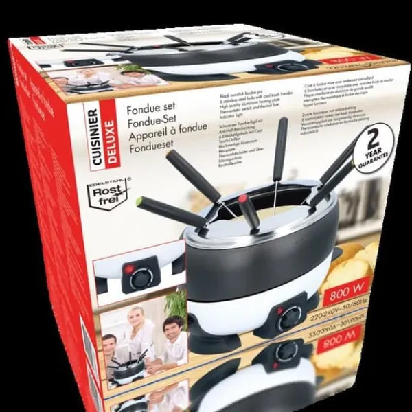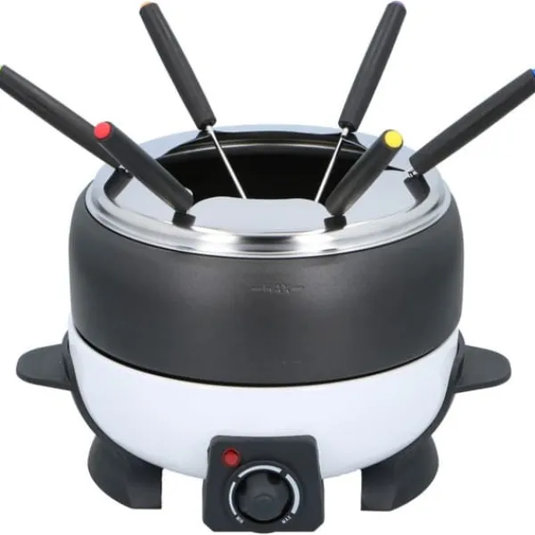 Förvandla dina måltider till gemytliga stunder med ALPINA Deluxe Cook Electric Fondue Set. Effekt: 800 Watt. Elektrisk fonduemaskin: 230V – 50 Hz Non-stick beläggning. 6 fondue gafflar. Kapacitet: Min. 0,8 liter, max. 2 liter. Termostatbrytare och termosäkring. Material: rostfritt stål, aluminium och polypropen. Ljus.