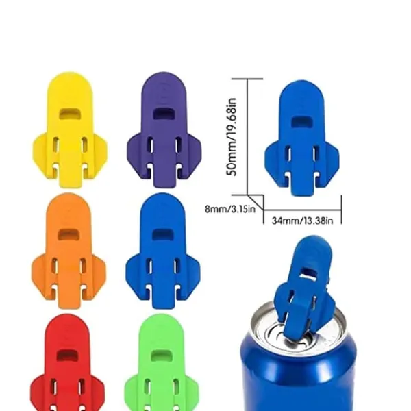 Färgstark design: Med en uppsättning av 12 burköppnare i olika färger (gul, orange, röd, lila, blå och grön) är det enkelt att hålla reda på din dryck. Den färgstarka designen gör dem också roliga och attraktiva, vilket gör dem perfekta för fester och sammankomster. Varje färg representerar en person, vilket minskar förvirringen. De är inte bara praktiska utan också ett stilfullt tillskott till din dryckesupplevelse. Denna färgstarka uppsättning gör det enkelt att identifiera din dryck och undvika förväxlingar.