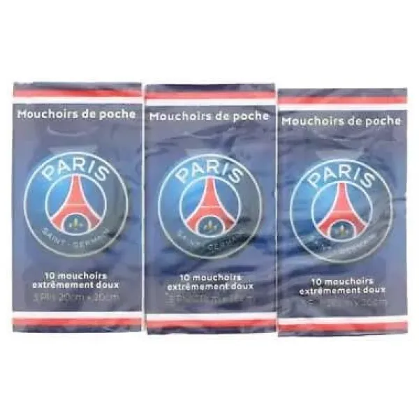 EPL Paris Saint – Germain pack of 20 x 6 pocket tissues feature 3-ply thickness. Strong and extra soft tissues are perfect size for handbags or pockets and feature the official Paris Saint – Germain crest.