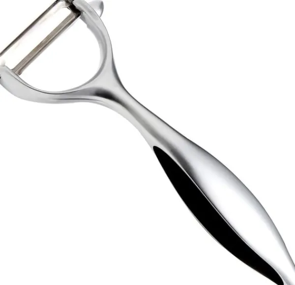 Robust zinklegeringskonstruktion kombinerad med det matta och dubbelsidiga gummibelagda handtaget. Denna ergonomiska Y-skalare är enkel att använda i alla grepp, vilket gör förberedelserna av grönsaker och frukter simpelt och smidigt. Att inte tala om är att hela formen är estetisk vacker, vilket betyder att den gör sig bra i köket som inredning.