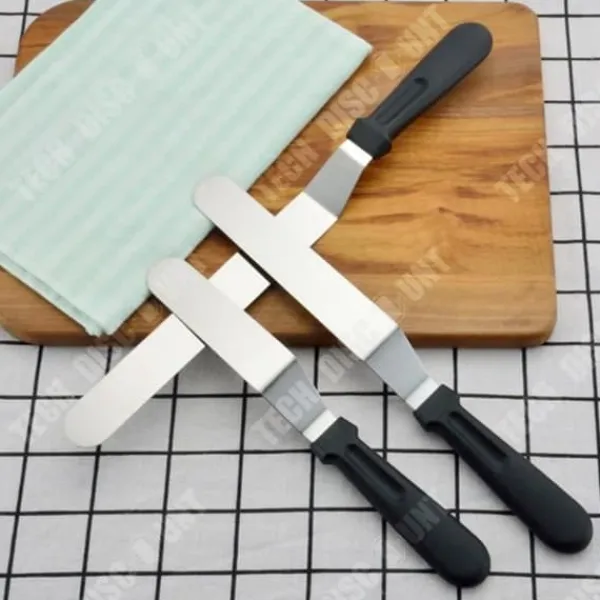 Detta set med tre vikbara spatel i rostfritt stål är perfekt för dekoration och utjämning av dina kakor. Med storlekar från 26,5 cm till 36,7 cm är de hållbara och tål både diskmaskin och frys. Perfekta för användning i köket, de förenar funktionalitet och kvalitet.