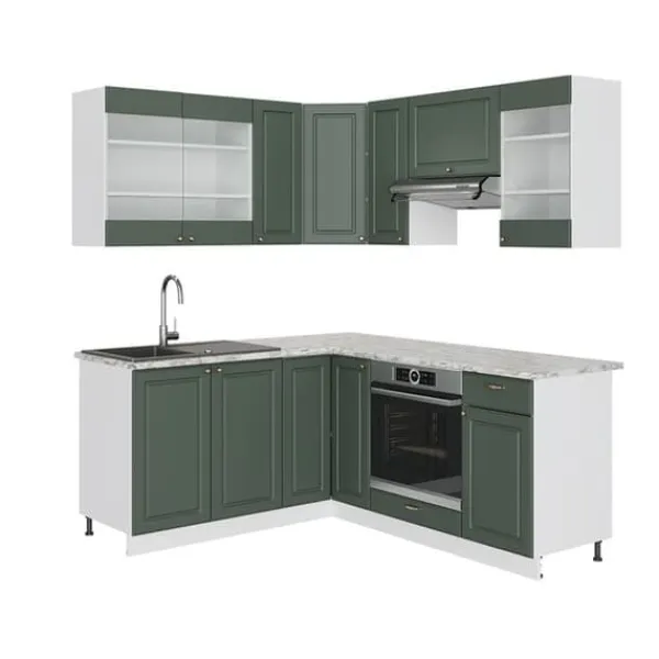 MATERIAL: Hörnköket är tillverkat av lättskött 16 mm spånskiva med melaminhartsbeläggning. Alla fronter på köksenheterna är gjorda av högkvalitativ MDF.