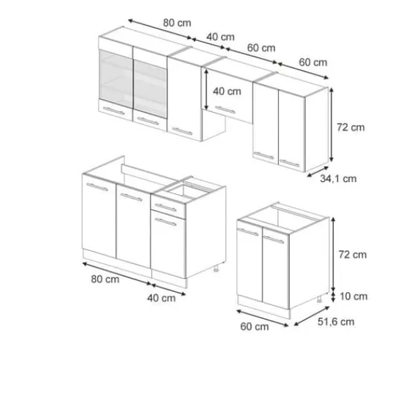 MATERIAL: Det modulära pentryt är tillverkat av lättskött 16 mm spånskiva, med melaminhartsbeläggning. Alla fronter på köksenheterna är gjorda av högkvalitativ MDF.