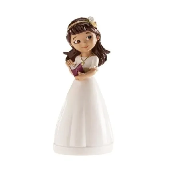 Figur med 13 cm i höjd med diadem i resin, perfekt för att dekorera en tårta vid en kommunion. Idealiskt för flickor, den kommer att ge en elegant touch till din fest.